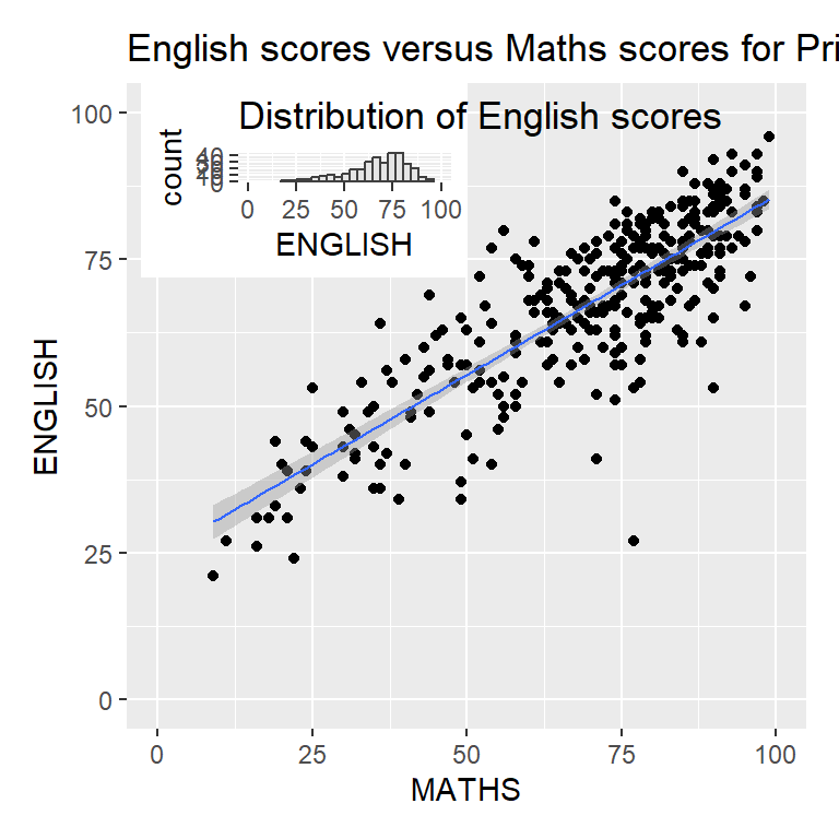 ggtitle("English scores versus Maths scores for Primary 3")